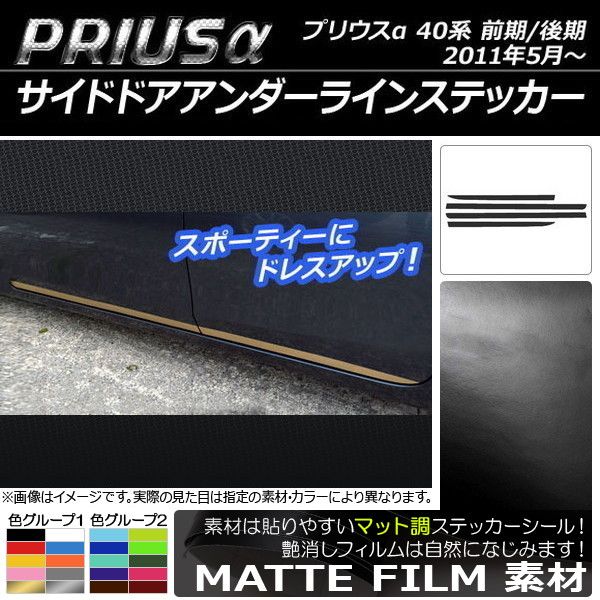 AP サイドドアアンダーラインステッカー マット調 トヨタ プリウスα ZVW40/ZVW41 前期/後期 2011年05月〜 色グループ2 AP-CFMT232 入数:1セット(4枚)