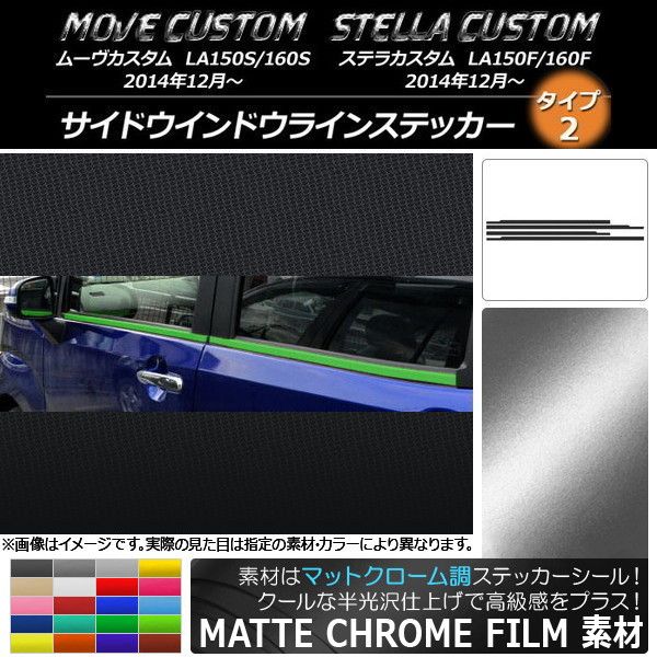 AP サイドウインドウラインステッカー マットクローム調 タイプ2 ムーヴカスタム/ステラカスタム LA150/LA160 選べる20カラー AP-MTCR1244 入数:1セット(4枚)