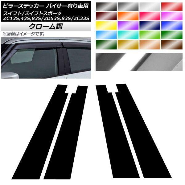 ピラーステッカー スイフト(スポーツ) ZC13S/ZC43S/ZC83S/ZD53S/ZD83S/ZC33S サイドバイザー有り車用 クローム調 選べる20カラー AP-CRM3898 入数:1セット(4枚)