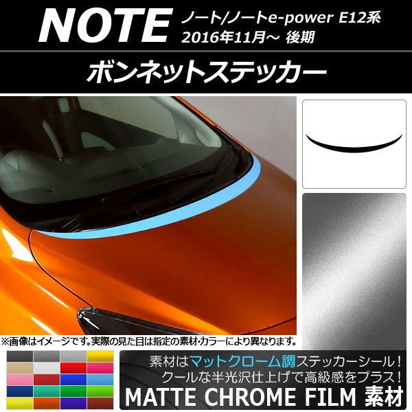 ボンネットステッカー ニッサン ノート/ノートe-power E12系 後期 2016年11月〜 マットクローム調 選べる20カラー AP-MTCR3269