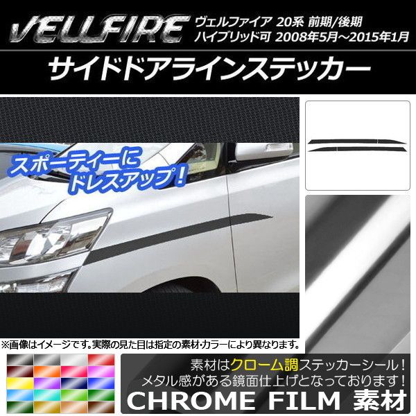 AP サイドドアラインステッカー クローム調 トヨタ ヴェルファイア 20系 前期/後期 ハイブリッド可 選べる20カラー AP-CRM703 入数:1セット(4枚)