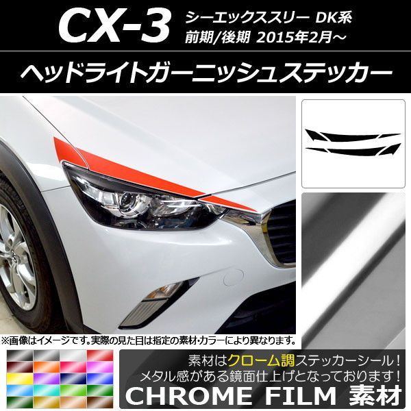 ヘッドライトガーニッシュステッカー マツダ CX-3 DK系 前期/後期 2015年02月〜 クローム調 選べる20カラー AP-CRM3172 入数:1セット(6枚)