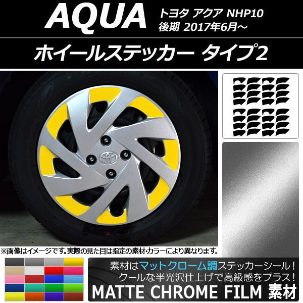 AP ホイールステッカー マットクローム調 タイプ2 トヨタ アクア NHP10 後期 2017年06月〜 選べる20カラー AP-MTCR3498