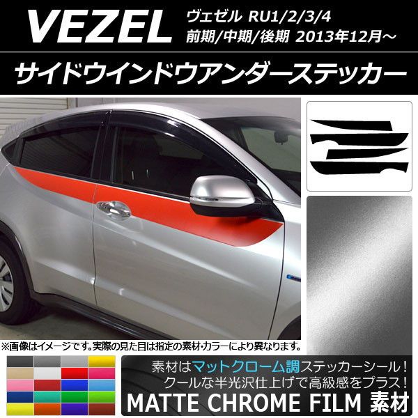 サイドウインドウアンダーステッカー ホンダ ヴェゼル RU1/2/3/4 2013年12月〜 マットクローム調 選べる20カラー AP-MTCR3468 入数:1セット(4枚)