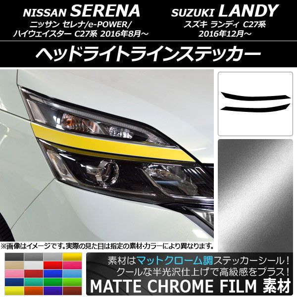 ヘッドライトラインステッカー ニッサン/スズキ セレナ/ランディ C27系 マットクローム調 選べる20カラー AP-MTCR3836 入数:1セット(2枚)
