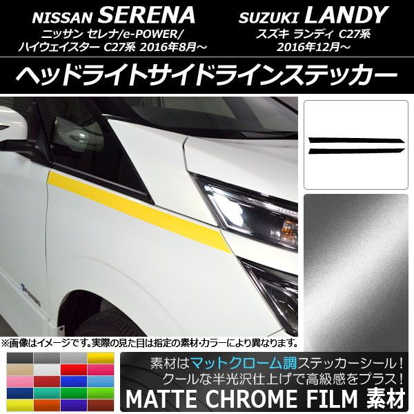 ヘッドライトサイドラインステッカー ニッサン/スズキ セレナ/ランディ C27系 マットクローム調 選べる20カラー AP-MTCR3829 入数:1セット(2枚)
