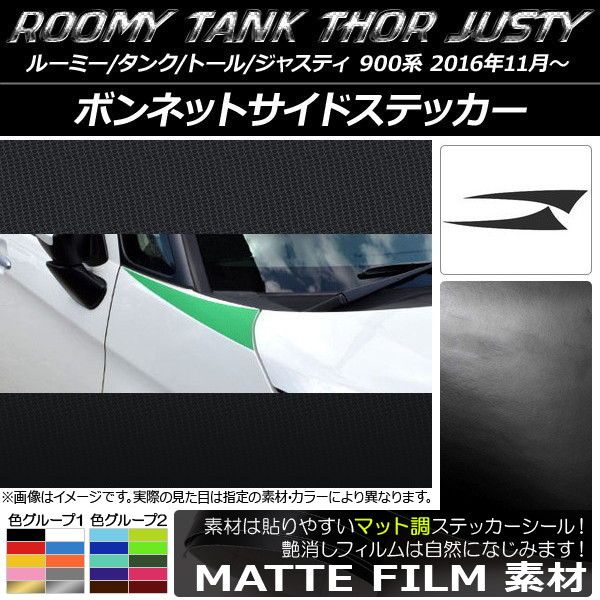 AP ボンネットサイドステッカー マット調 ルーミー/タンク,トール,ジャスティ M900/M910 色グループ1 AP-CFMT1115 入数:1セット(2枚)