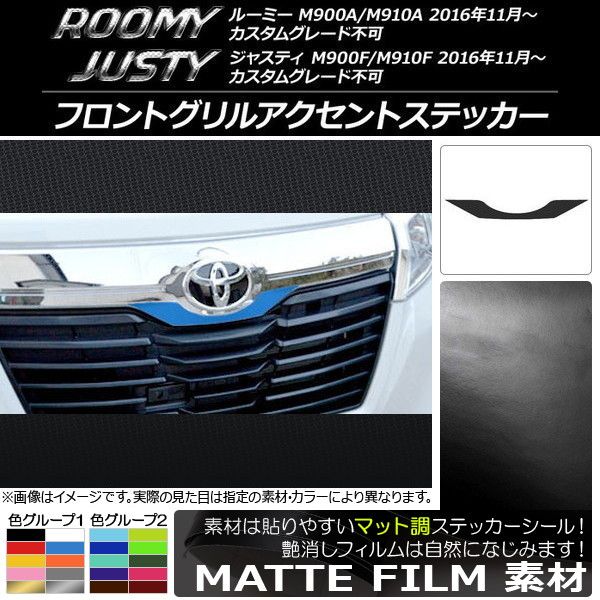フロントグリルアクセントステッカー ルーミー,トール,ジャスティ M900/M910 マット調 色グループ2 AP-CFMT1111
