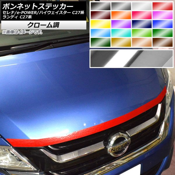 AP ボンネットステッカー クローム調 ニッサン スズキ セレナ/e-POWER/ハイウェイスター ランディ C27系 選べる20カラー AP-CRM3964