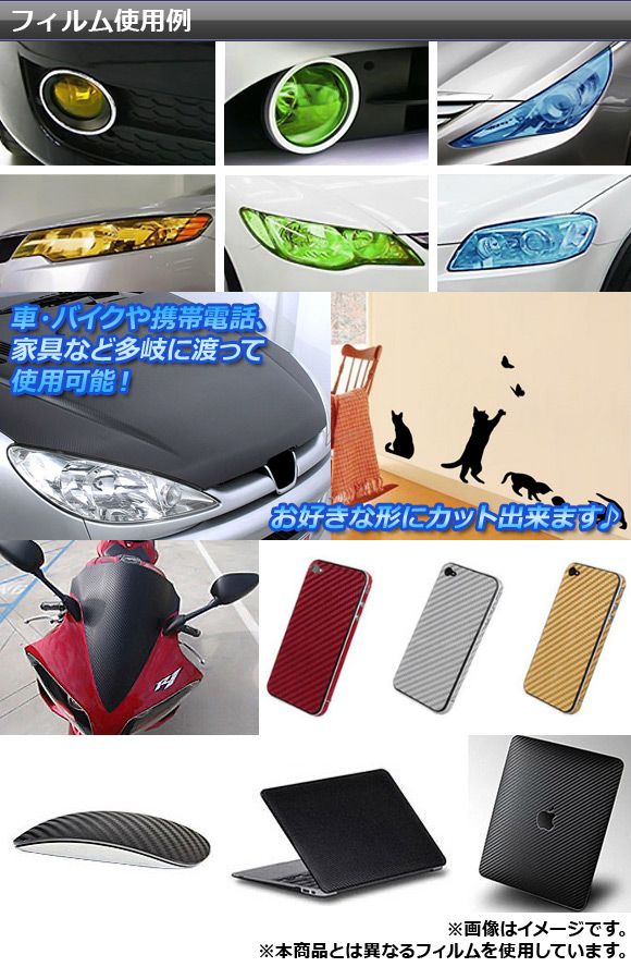 車・バイクに限らず、携帯電話や家具にも貼り付けできる汎用性の高いシートになります。