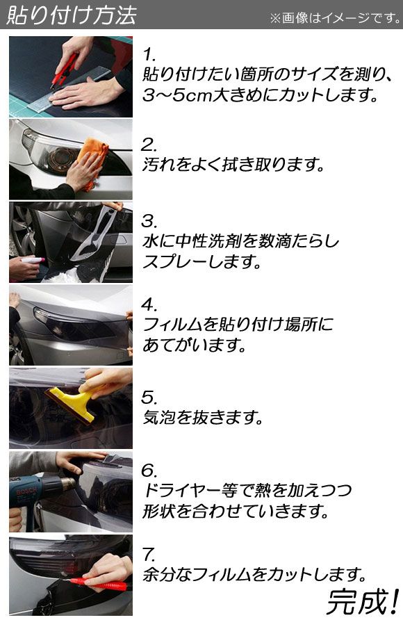 お好みのサイズにカットして、車やバイクのレンズ部分などに貼ればドレスアップ効果抜群!
