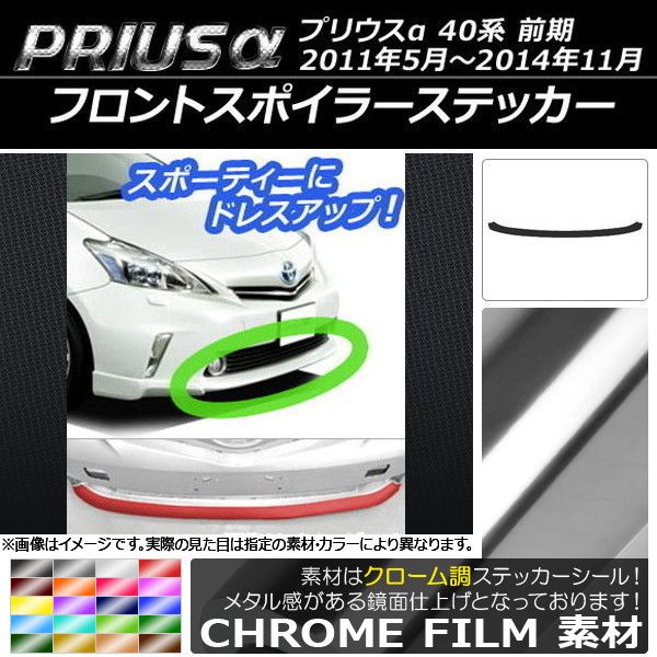 フロントスポイラーステッカー トヨタ プリウスα ZVW40/ZVW41 前期 2011年05月〜2014年11月 クローム調 選べる20カラー AP-CRM518
