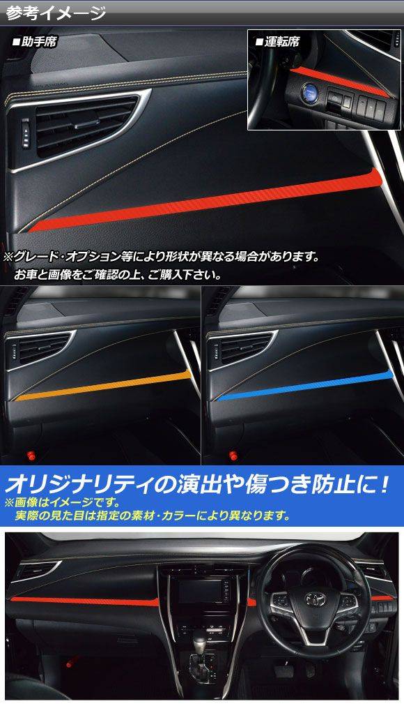 AP フロントパネルステッカー カーボン調 トヨタ ハリアー/ハリアーハイブリッド 60系 2013年12月〜2020年05月 選べる20カラー AP-CF4184 入数:1セット(3枚)