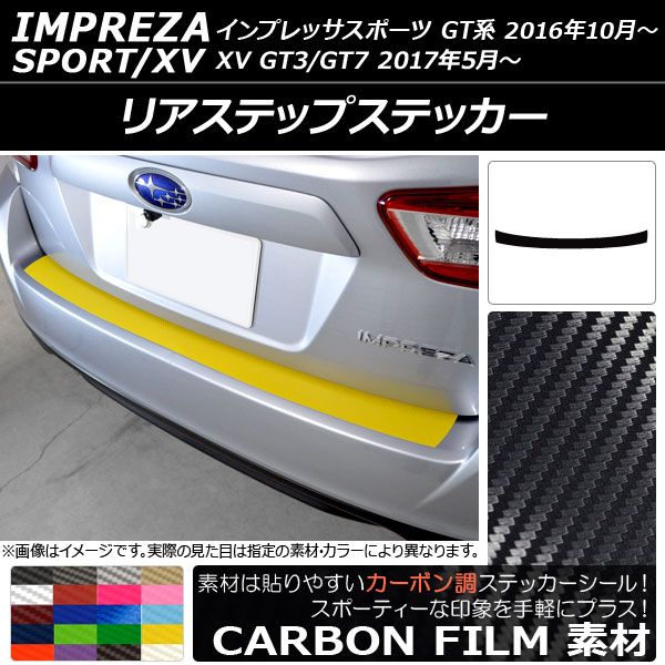 リアステップステッカー カーボン調 スバル インプレッサスポーツ/XV GT系 2016年10月〜 選べる20カラー AP-CF2077 カラー: ブラック ホワイト レッド ブルー イエロー グリーン オレンジ パープル ピンク ネイビー ブラウン ボルドー クリア ゴールド シルバー ガンメタリック マゼンタ ダークグリーン メタリックブルー ライトブルー