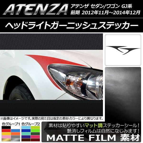 AP ヘッドライトガーニッシュステッカー マット調 マツダ アテンザセダン/ワゴン GJ系 前期 色グループ2 AP-CFMT1690 入数:1セット(2枚)