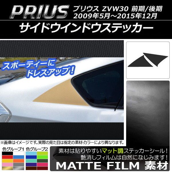 AP サイドウインドウステッカー マット調 トヨタ プリウス ZVW30 前期/後期 2009年05月〜2015年12月 色グループ1 AP-CFMT188 入数:1セット(2枚)