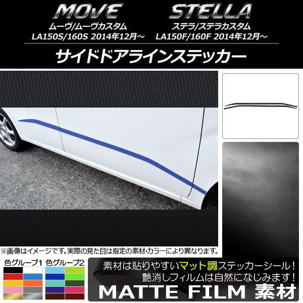 サイドドアラインステッカー ダイハツ/スバル ムーヴ/カスタム,ステラ/カスタム マット調 色グループ1 入数:1セット(6枚) AP-CFMT1164 色グループ1: ブラック ホワイト レッド ブルー イエロー オレンジ ピンク グレー ゴールド シルバー