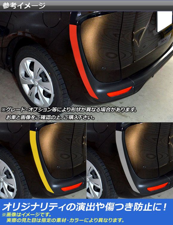 リアバンパーサイドステッカー トヨタ シエンタ/シエンタハイブリッド 170系 2015年07月〜 カーボン調 選べる20カラー AP-CF3939 入数:1セット(2枚)