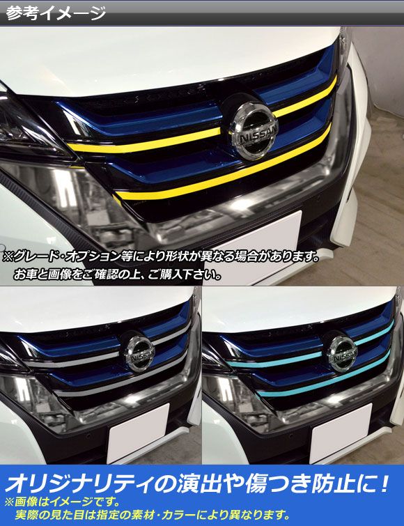 フロントグリルガーニッシュステッカー ニッサン セレナハイウェイスター/ニスモ C27系 カーボン調 選べる20カラー AP-CF3832 入数:1セット(3枚)