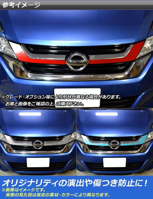 AP フロントグリルガーニッシュステッカー クローム調 セレナ/セレナe-Power C27系 ハイウェイスター等不可 選べる20カラー AP-CRM3974 入数:1セット(2枚)