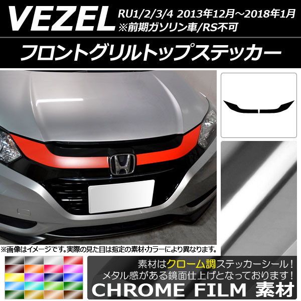 フロントグリルトップステッカー ホンダ ヴェゼル RU1/2/3/4 2013年12月〜2018年01月 クローム調 選べる20カラー AP-CRM3581 入数:1セット(2枚)