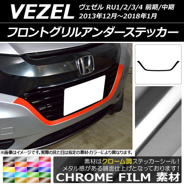 フロントグリルアンダーステッカー ホンダ ヴェゼル RU1/2/3/4 前期/中期 2013年12月〜2018年01月 クローム調 選べる20カラー AP-CRM3422