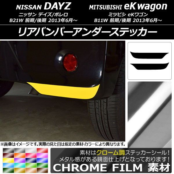 リアバンパーアンダーステッカー ニッサン/ミツビシ デイズ/ボレロ/eKワゴン B21W/B11W クローム調 選べる20カラー AP-CRM3694 入数:1セット(2枚)