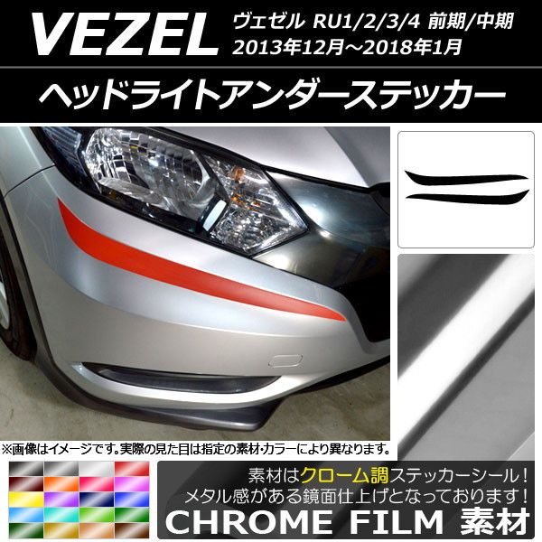 ヘッドライトアンダーステッカー ホンダ ヴェゼル RU1/2/3/4 前期/中期 2013年12月〜2018年01月 クローム調 選べる20カラー AP-CRM3418 入数:1セット(2枚)
