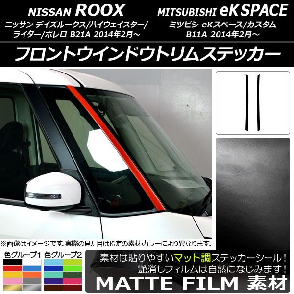 AP フロントウインドウトリムステッカー マット調 ニッサン/ミツビシ デイズルークス/eKスペース B21A/B11A 色グループ1 AP-CFMT3533 入数:1セット(2枚)