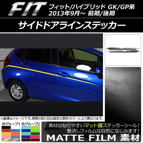 サイドドアラインステッカー ホンダ フィット/ハイブリッド GK系/GP系 前期/後期 2013年09月〜 マット調 色グループ2 AP-CFMT2379 入数:1セット(6枚)