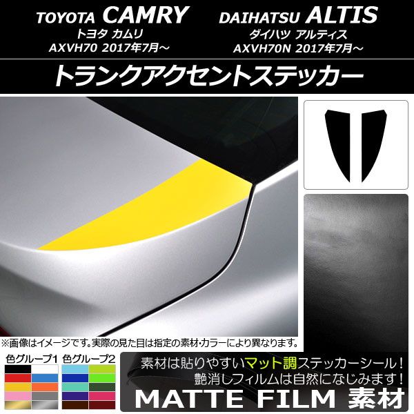 トランクアクセントステッカー トヨタ/ダイハツ カムリ/アルティス XV70系 2017年07月〜 マット調 色グループ1 AP-CFMT3107 入数:1セット(2枚)