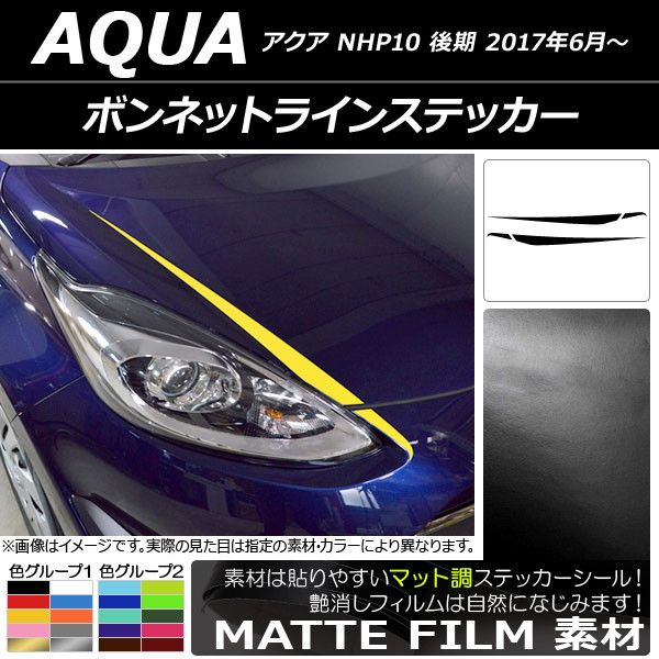 ボンネットラインステッカー トヨタ アクア NHP10 後期 2017年06月〜 マット調 色グループ1 AP-CFMT3373 入数:1セット(4枚)