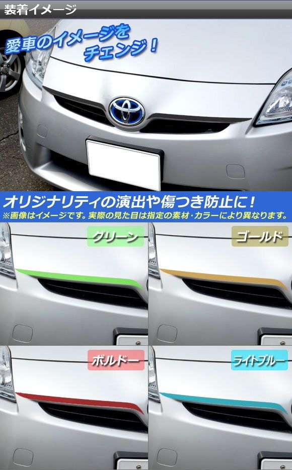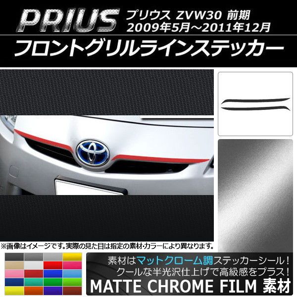 フロントグリルラインステッカー トヨタ プリウス ZVW30 前期 2009年05月〜2011年12月 マットクローム調 選べる20カラー AP-MTCR199 入数:1セット(2枚)