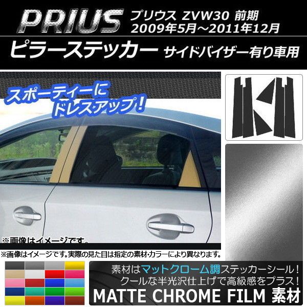 ピラーステッカー トヨタ プリウス ZVW30 前期 サイドバイザー有り車用 マットクローム調 選べる20カラー AP-MTCR192 入数:1セット(6枚)