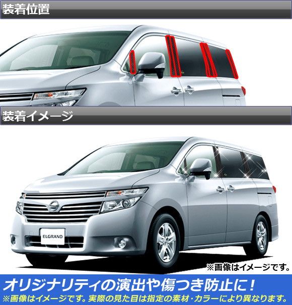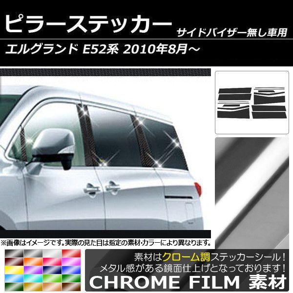 ピラーステッカー ニッサン エルグランド E52系 サイドバイザー無し用 2010年08月〜 クローム調 選べる20カラー AP-CRM212 入数:1セット(14枚)
