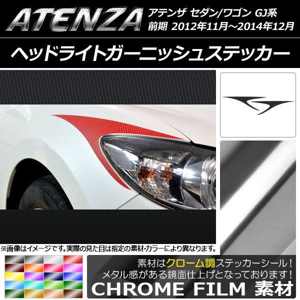 ヘッドライトガーニッシュステッカー マツダ アテンザセダン/ワゴン GJ系 前期 クローム調 選べる20カラー AP-CRM1690 入数:1セット(2枚)