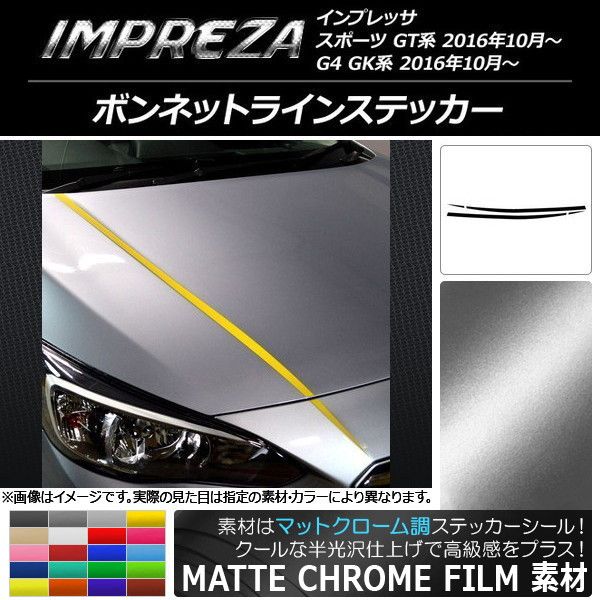 ボンネットラインステッカー スバル インプレッサ スポーツ/G4 GT/GK系 2016年10月〜 マットクローム調 選べる20カラー AP-MTCR2111 入数:1セット(4枚)