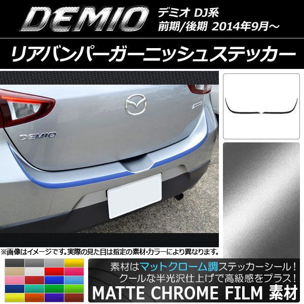 リアバンパーガーニッシュステッカー マツダ デミオ DJ系 前期/後期 マットクローム調 選べる20カラー AP-MTCR1334 入数:1セット(2枚)