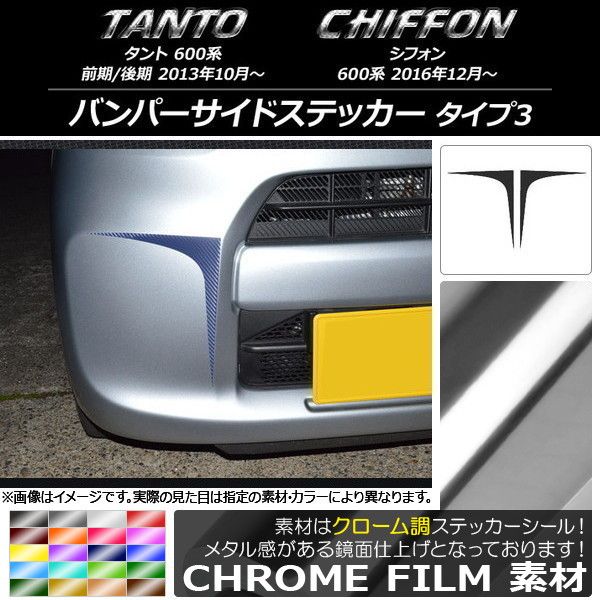 バンパーサイドステッカー ダイハツ/スバル タント/シフォン 600系 カスタム不可 クローム調 タイプ3 選べる20カラー 入数:1セット(2枚) AP-CRM1274