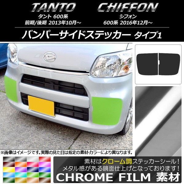 バンパーサイドステッカー ダイハツ/スバル タント/シフォン 600系 カスタム不可 クローム調 タイプ1 選べる20カラー 入数:1セット(2枚) AP-CRM1260
