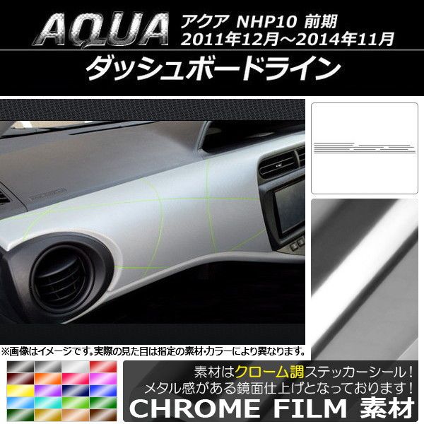 ダッシュボードラインステッカー トヨタ アクア NHP10 前期 2011年12月〜2014年11月 クローム調 選べる20カラー AP-CRM124 入数:1セット(11枚)