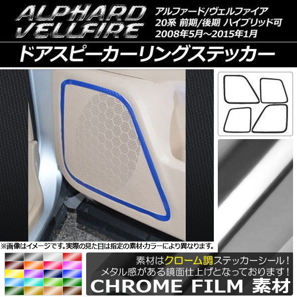 AP ドアスピーカーリングステッカー クローム調 トヨタ アルファード/ヴェルファイア 20系 ハイブリッド可 選べる20カラー AP-CRM683 入数:1セット(4枚)