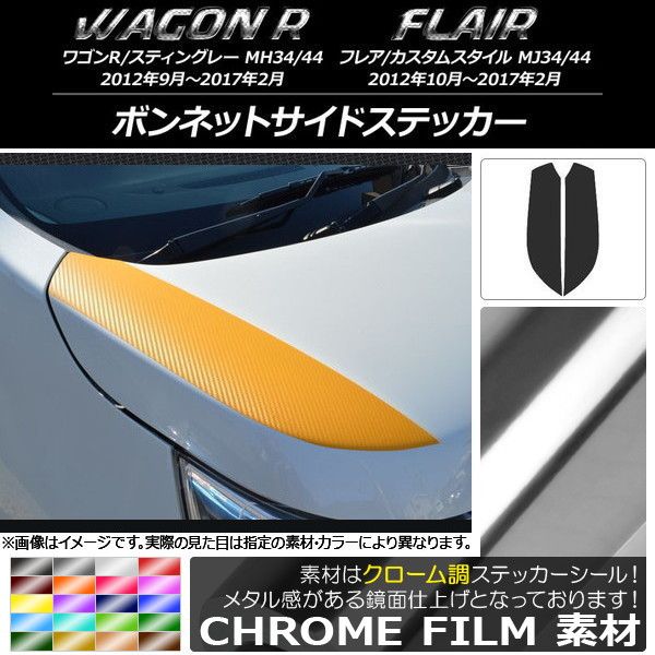 AP ボンネットサイドステッカー クローム調 スズキ/マツダ ワゴンR/スティングレー,フレア/カスタムスタイル 選べる20カラー AP-CRM1025 入数:1セット(2枚)