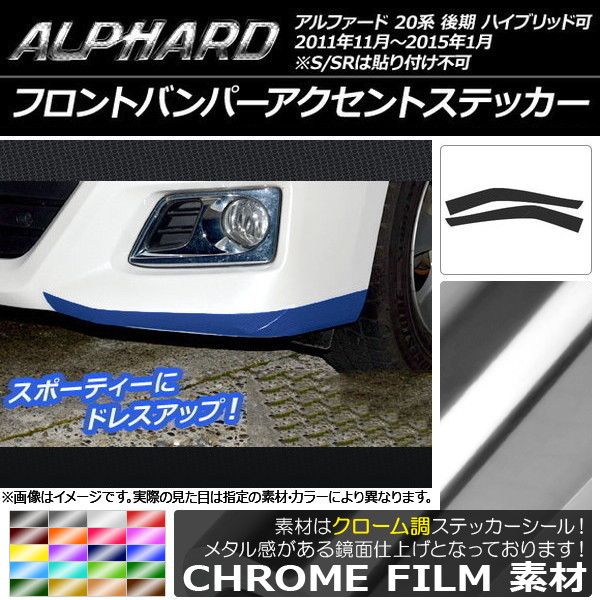 AP フロントバンパーアクセントステッカー クローム調 トヨタ アルファード 20系 後期 ハイブリッド可 選べる20カラー AP-CRM750 入数:1セット(4枚)