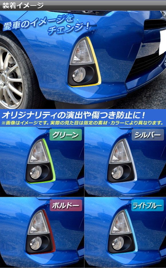 フォグランプアクセントラインステッカー トヨタ アクア NHP10 2011年12月〜2014年11月 マットクローム調 選べる20カラー AP-MTCR141 入数:1セット(2枚)