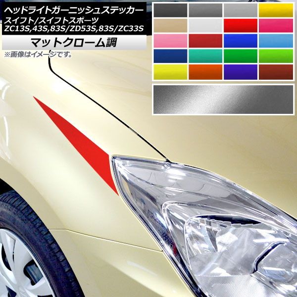 AP ヘッドライトガーニッシュステッカー マットクローム調 スイフト(スポーツ) ZC13S/ZC43S/ZC83S/ZD53S/ZD83S/ZC33S 選べる20カラー AP-MTCR3882 入数:1セット(2枚)