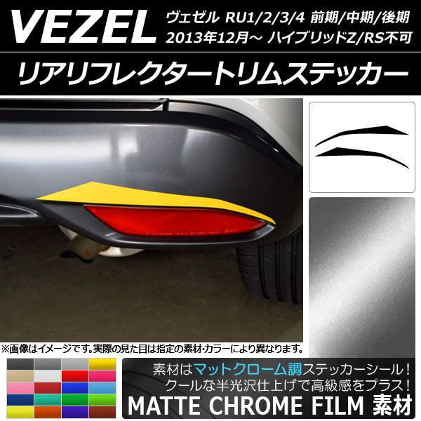 リアリフレクタートリムステッカー ホンダ ヴェゼル RU1/2/3/4 2013年12月〜 マットクローム調 選べる20カラー AP-MTCR3450 入数:1セット(2枚)