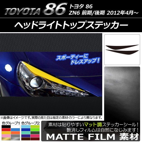 ヘッドライトトップステッカー トヨタ 86 ZN6 前期/後期 2012年4月〜 マット調 色グループ2 AP-CFMT2229 入数:1セット(2枚)