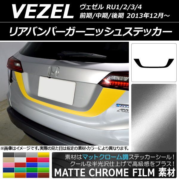 AP リアバンパーガーニッシュステッカー マットクローム調 ホンダ ヴェゼル RU1/2/3/4 前期/中期/後期 2013年12月〜 選べる20カラー AP-MTCR3453