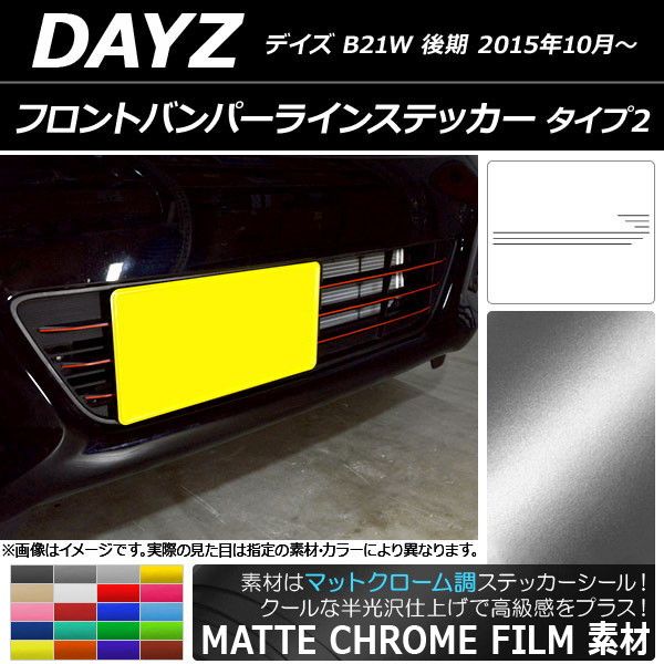 フロントバンパーラインステッカー ニッサン デイズ B21W 後期 2015年10月〜 マットクローム調 タイプ2 選べる20カラー AP-MTCR3635 入数:1セット(6枚)
